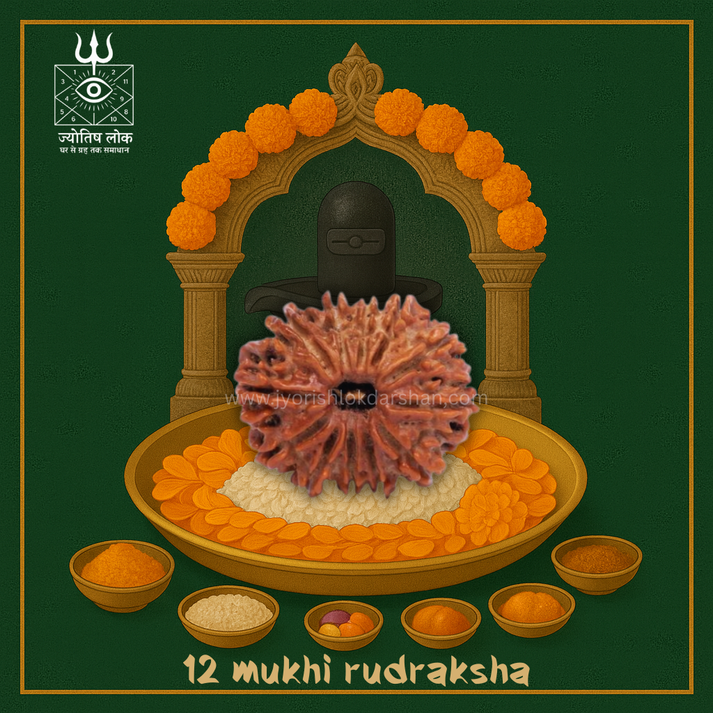 बारह मुखी रुद्राक्ष भगवान सूर्यदेव (आदित्य नारायण) का साक्षात प्रतीक है। यह रुद्राक्ष तेज, आत्मविश्वास, ऊर्जा और नेतृत्व का दाता है। इसका स्वामी ग्रह सूर्य (Sun) है — जो यश, शक्ति, स्वास्थ्य और मान-सम्मान का कारक है। 12 मुखी रुद्राक्ष धारण करने वाला व्यक्ति राजसिक तेज, नेतृत्व क्षमता और अप्रतिम आत्मबल प्राप्त करता है।